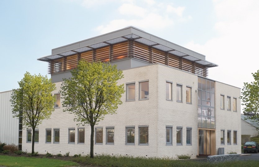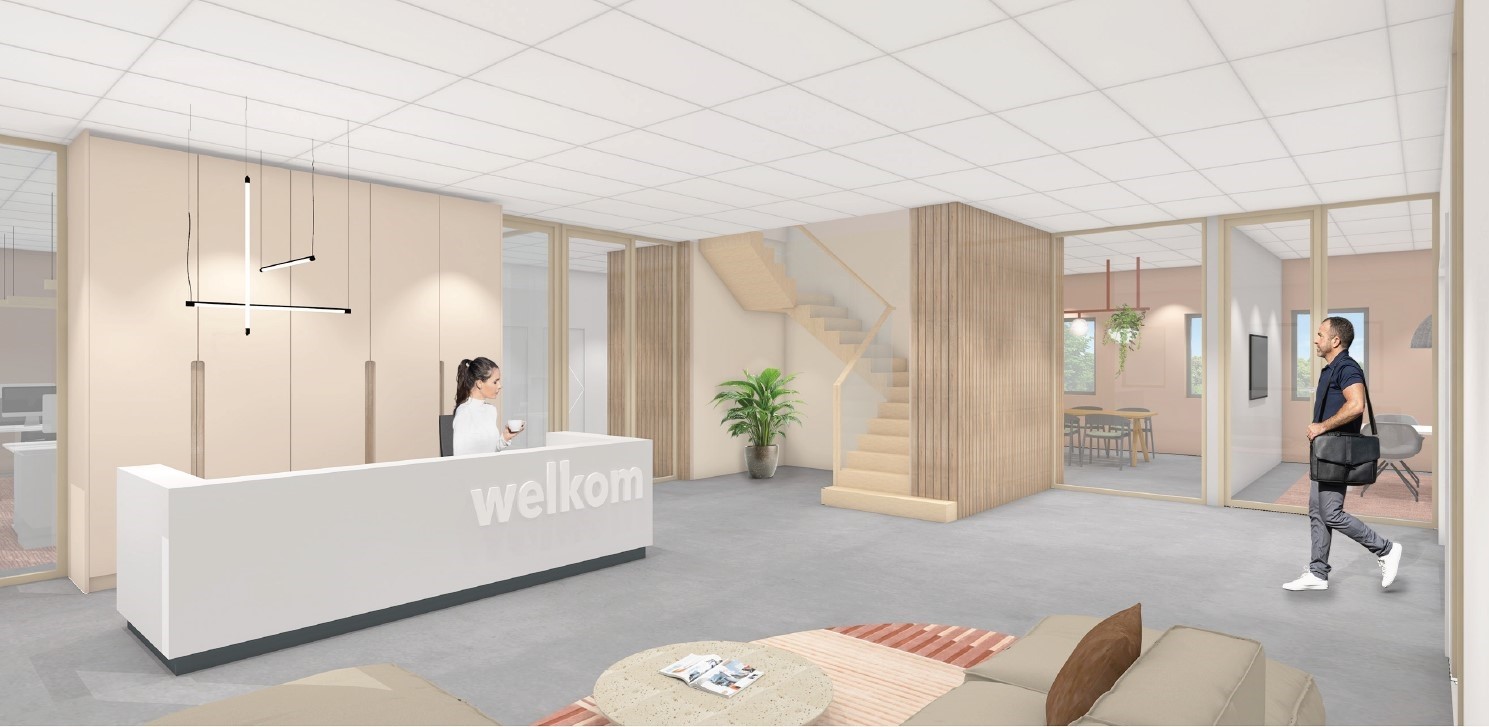Het vrijstaande bedrijfspand, waarvan de kantoorzijde momenteel wordt vernieuwd met o.a. een representatieve entree, luxe open trap en strakke vloeren en wanden, bevindt zich op het bedrijventerrein Paardenveld in IJsselstein.
