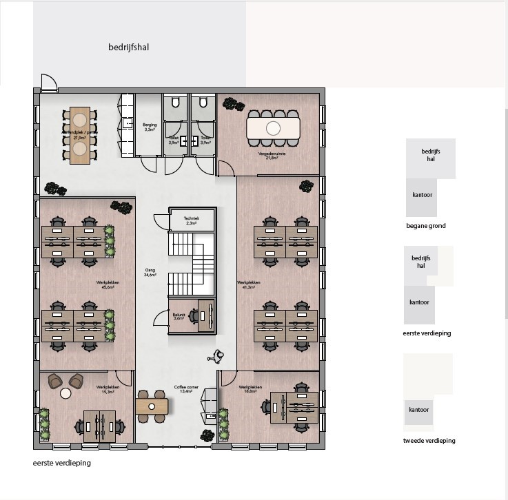 Bedrijfs- en kantoorruimte. Het bedrijfsgebouw is momenteel in gebruik als kantoor- en bedrijfsruimte en is door zijn bestemming geschikt voor groothandels en technische ondernemingen.