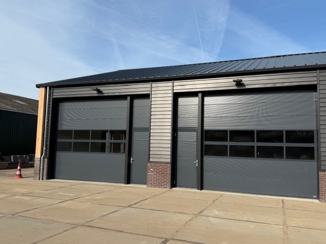 - elektrisch/ bedienbare overheaddeur van circa 4 x 3.8 m v.v. dubbele lichtstrook;